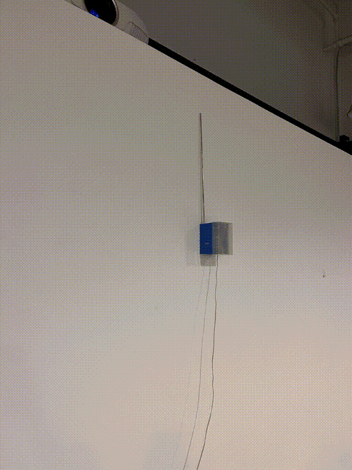 Opposite the projector, my laptop ran the client code. On display are the server’s logs, a QR code which linked to the web interface, and a state transition diagram documenting the system. A device, mounted on the wall, played a low 60 Hz buzz.